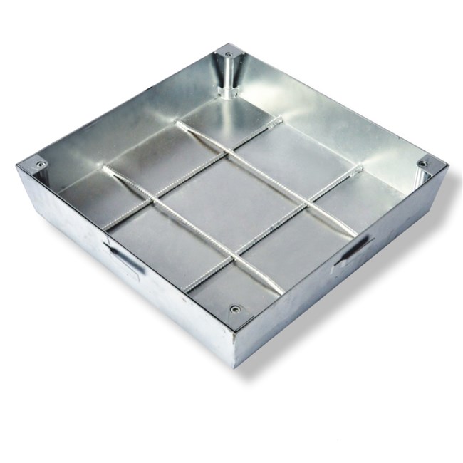 Il chiusino a pavimento Sistema PRO+M è realizzato in acciaio zincato inox dello spessore di 2mm.